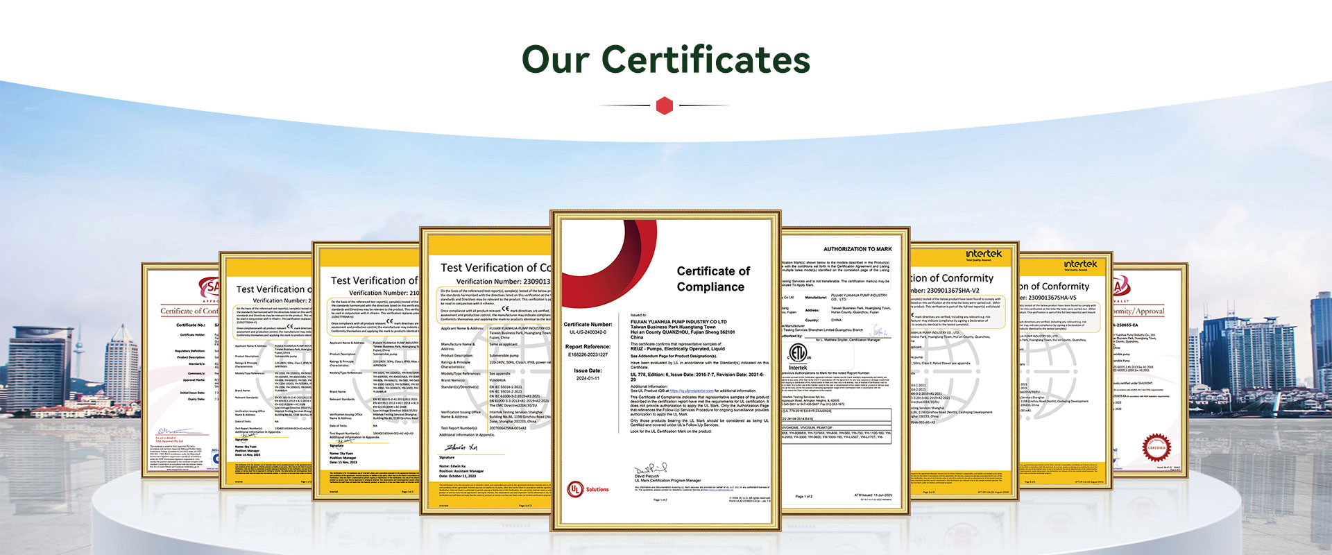 FUJIAN YUANHUA PUMP INDUSTRY CO., LTD oprettet i Fujian i 2009, som er et helejet datterselskab af PEAKTOP Group noteret i Hong Kong (SEHK aktiekode: HK0925). PEAKTOP Group blev etableret i 1991, hovedsagelig beskæftiger sig med gaver og husarbejde.